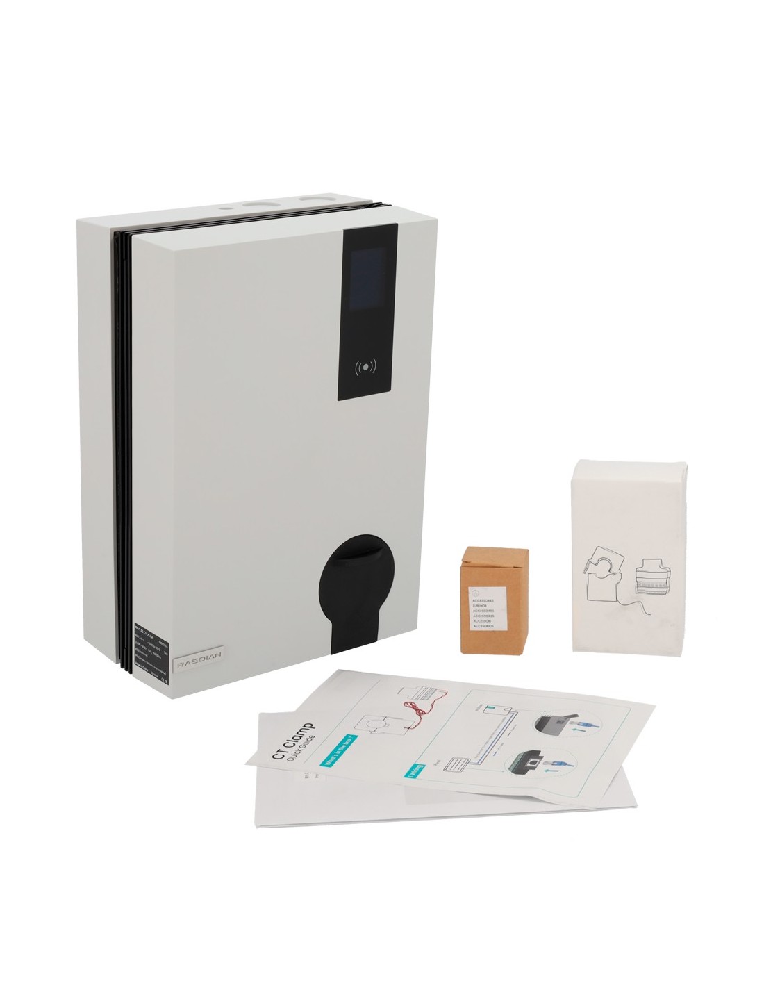Mediante la app Raedian se puede monitorizar, controlar y programar cargas en remoto, siendo posible además activar y desactivar el modo balanceo de carga. Lleva añadido dos tarjetas RFID, en caso de que se necesite que la carga se active mediante este modo.