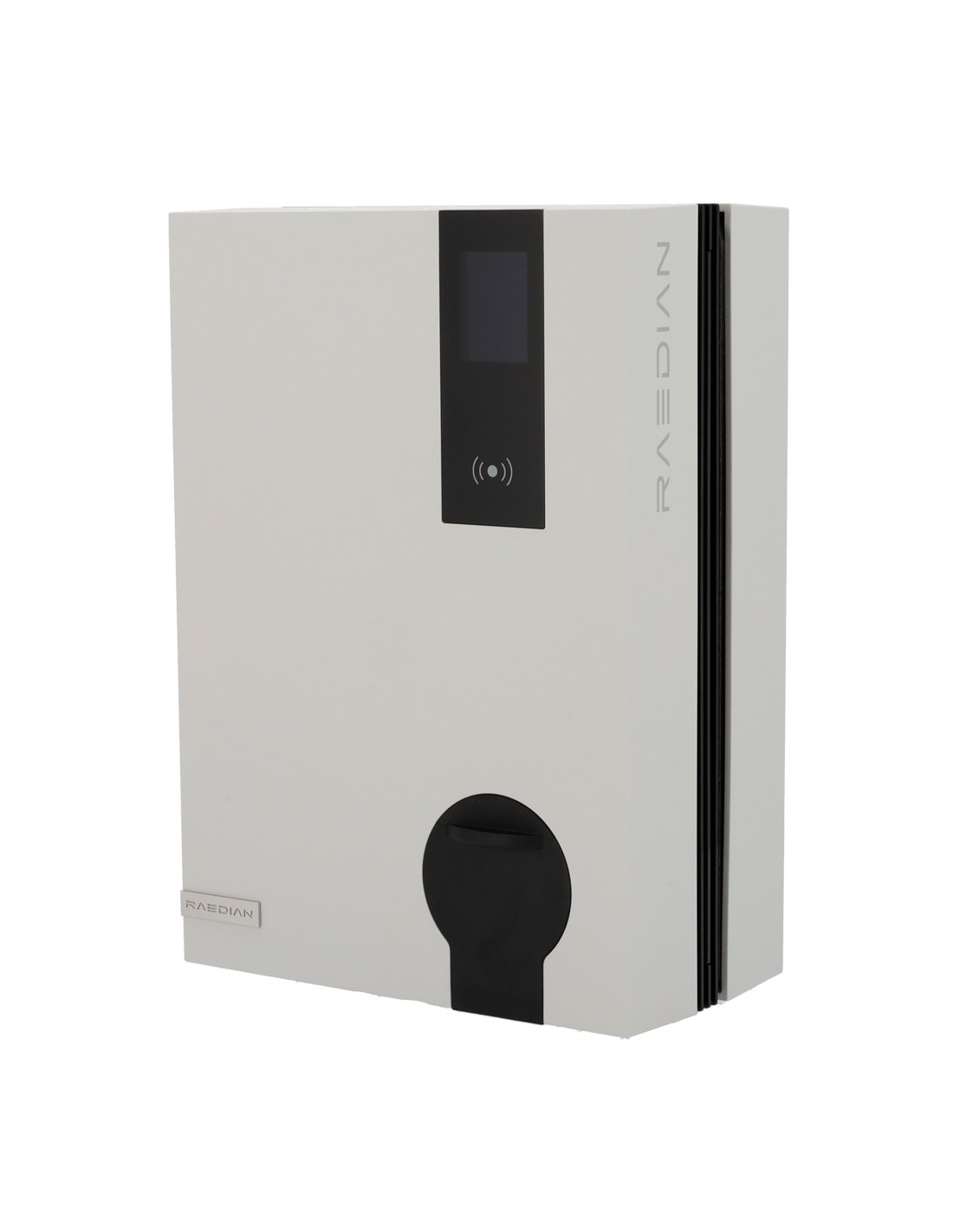 El cargador residencial para vehículo eléctrico NEO de Raedian es la mejor solución para cargar vehículos 100% eléctricos e híbridos enchufables de forma semirrápida en entornos residenciales. Presenta un diseño elegante y un tamaño reducido, lo cual, junto a sus tres entradas posibles para cables de potencia y comunicación, hace que su instalación sea sencilla y rápida.