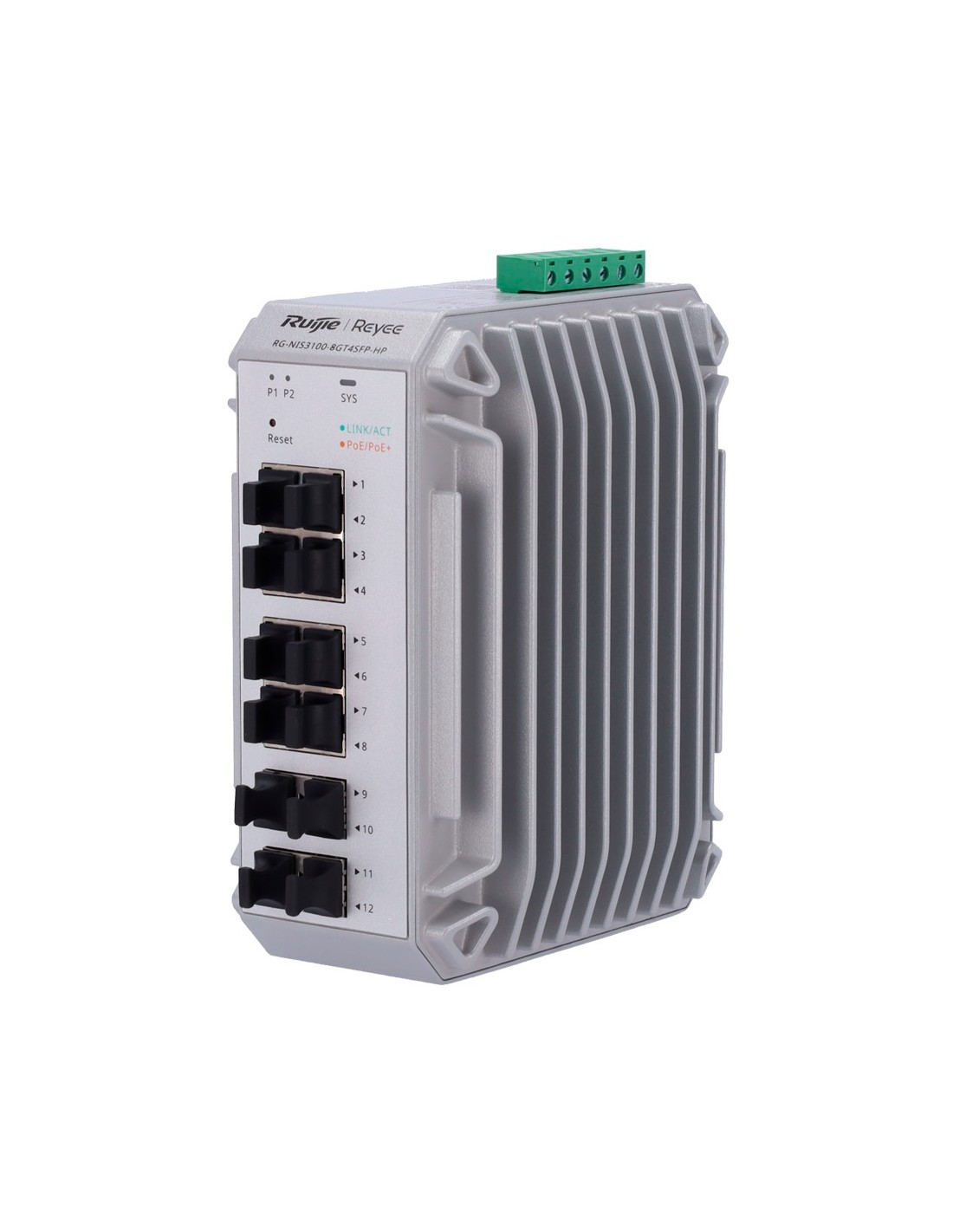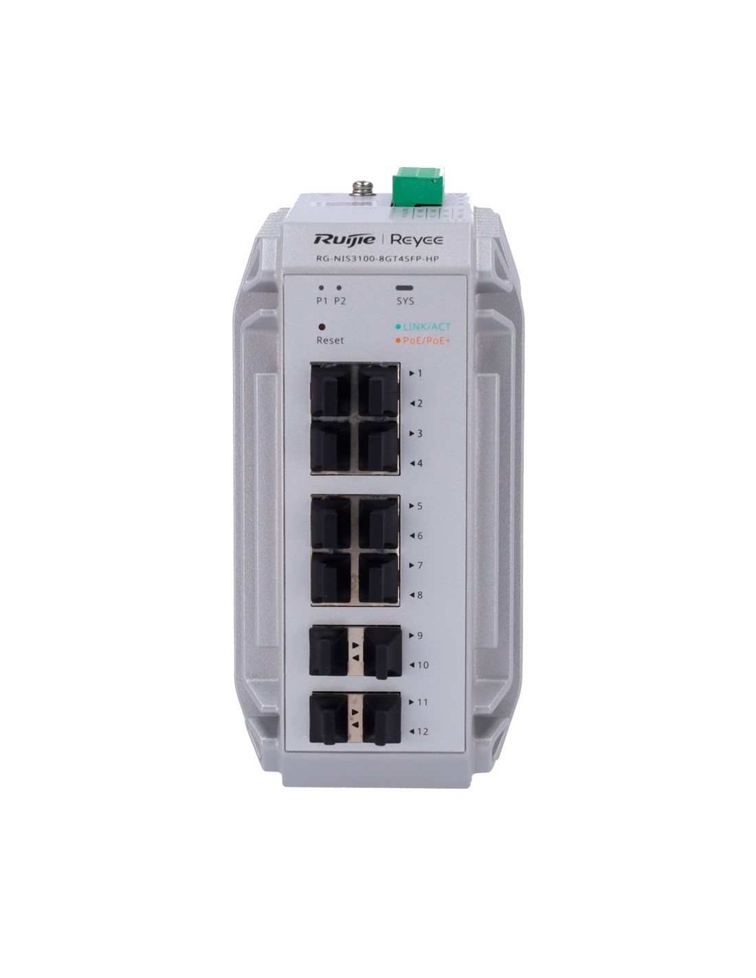 REYEE SWITCH INDUSTRIAL POE CLOUD CAPA 2 - 8 PUERTOS POE+ GIGABIT + 4 PUERTOS SFP GIGABIT - 30W POR PUERTO 802.3AF/AT / MÁXIMO 2
