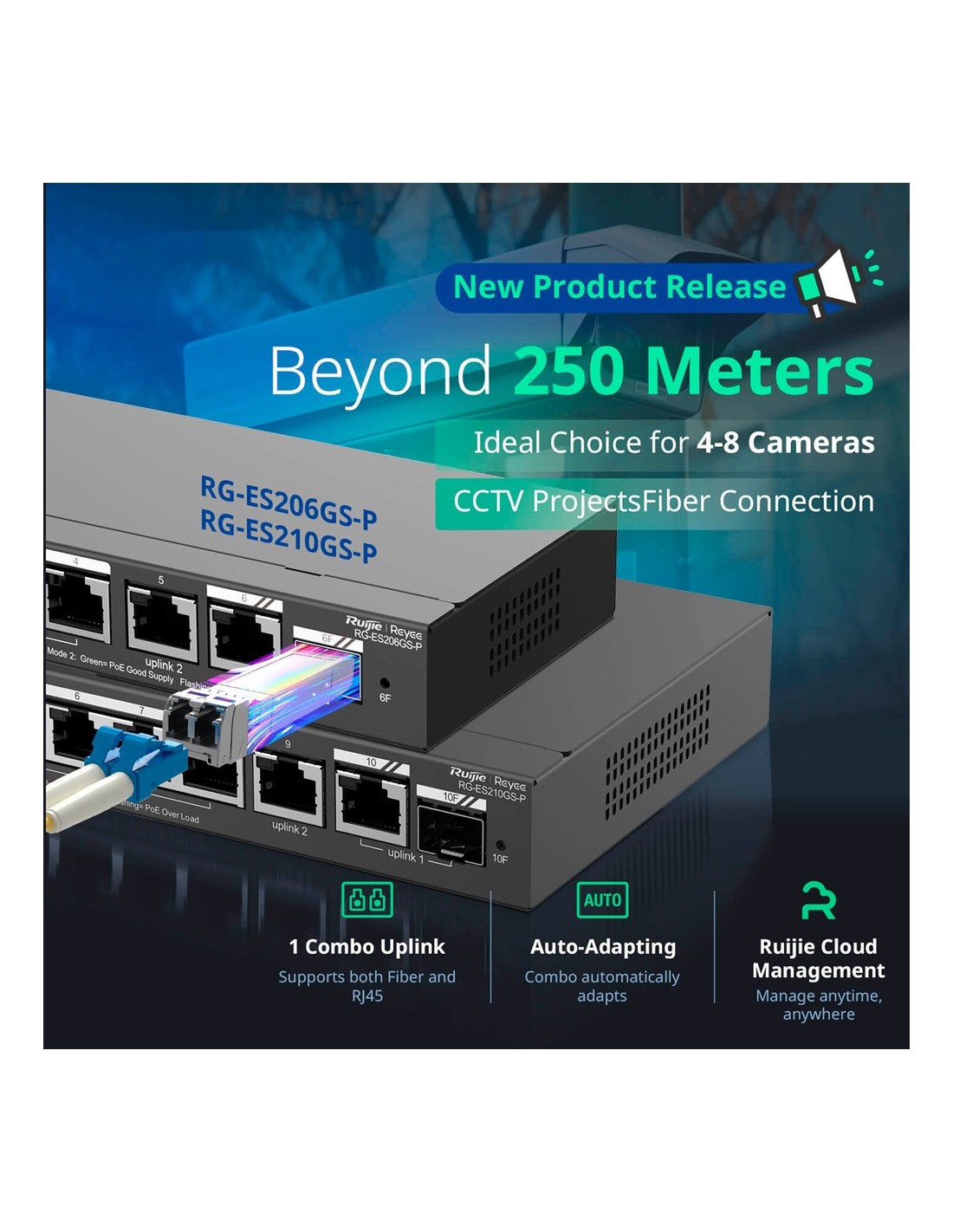 REYEE SWITCH POE CLOUD GESTIONABLE - 8 PUERTOS POE + 2 UPLINK RJ45 + 1 SFP COMBO - VELOCIDAD DE PUERTOS 10/100/1000 MBPS - 30W P