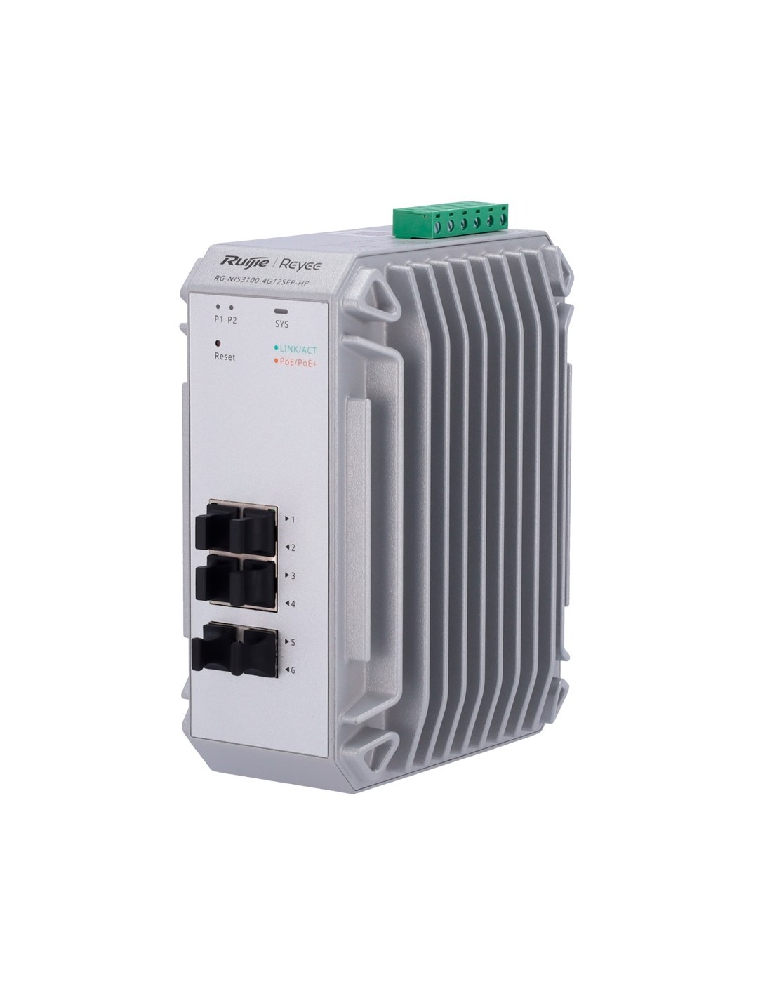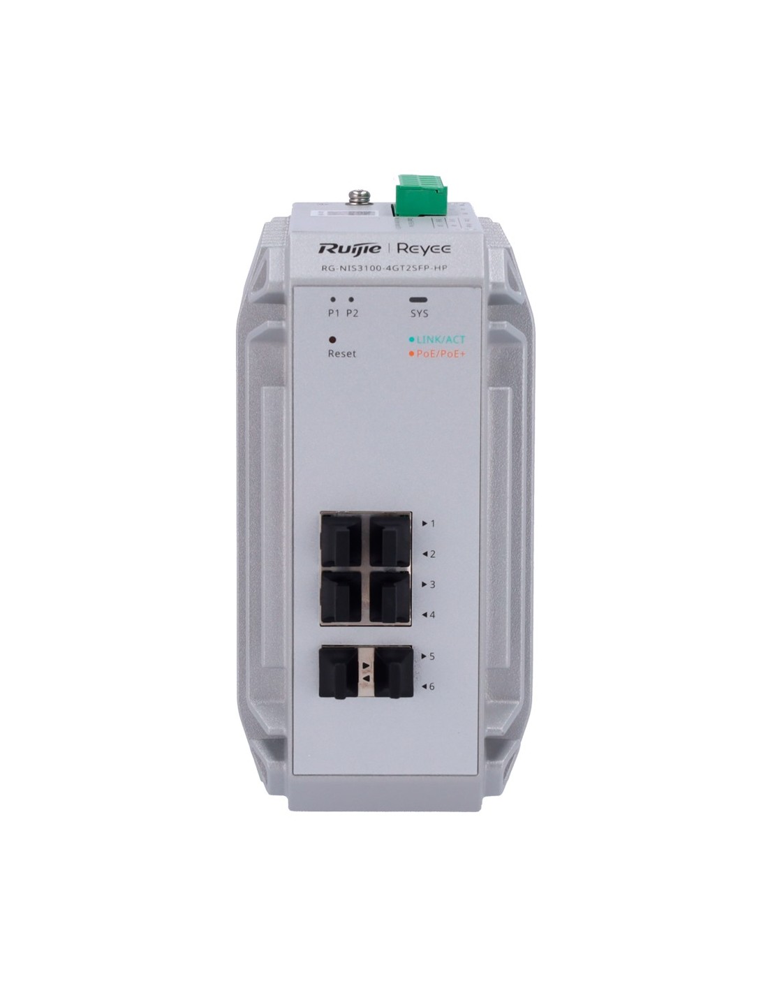 REYEE SWITCH INDUSTRIAL POE CLOUD CAPA 2 - 4 PUERTOS POE+ GIGABIT + 2 PUERTOS SFP GIGABIT - 30W POR PUERTO 802.3AF/AT / MÁXIMO 1