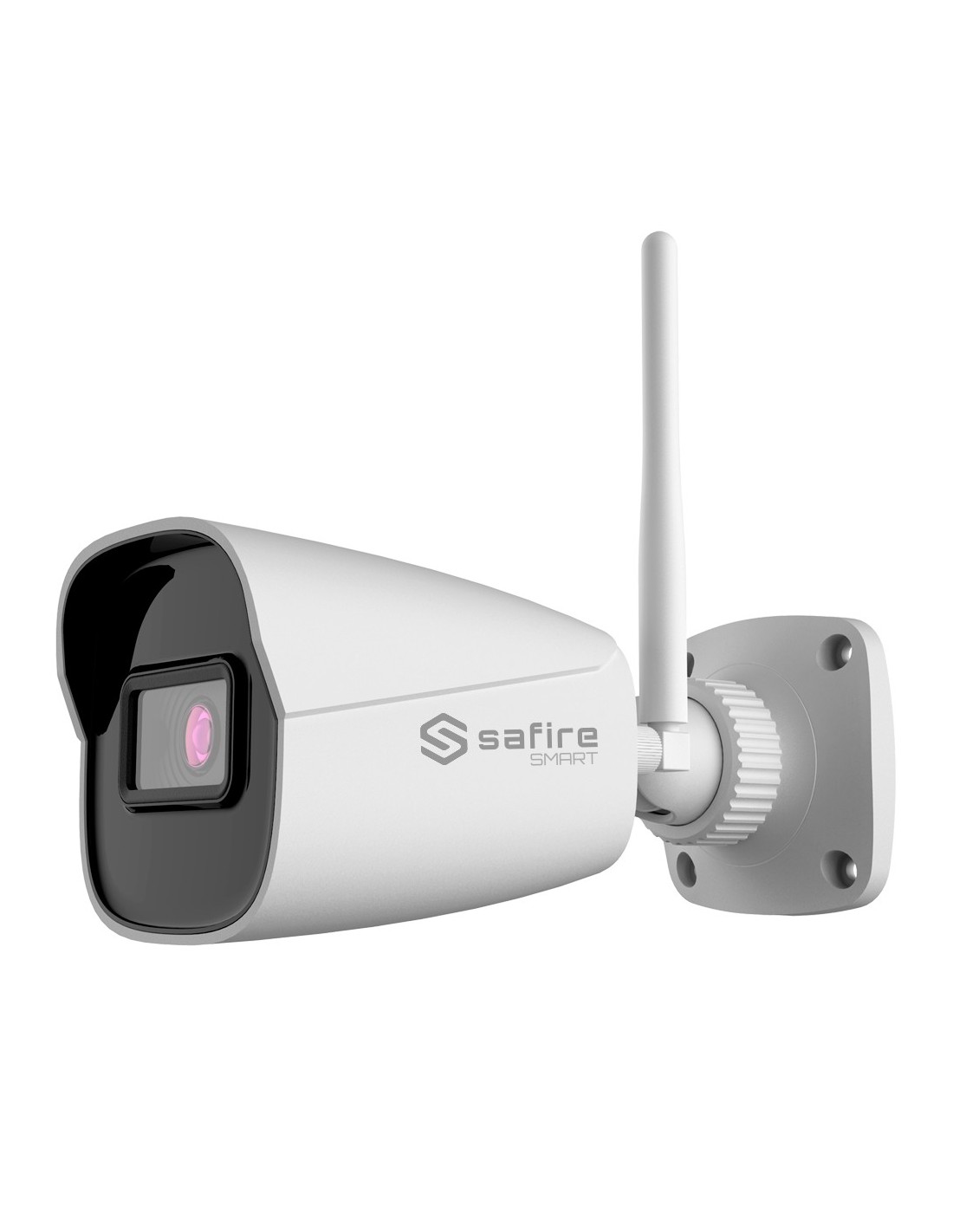 Safire Smart - Cámara Bullet WiFi E1 Inteligencia Artificial - Resolución 4 Megapíxel (2566x1440) - Lente 2.8 mm | Audio IN | IR 30m - AI: Clasificación de humano y vehículo - Impermeabilidad IP67 | PoE (IEEE802.3af)