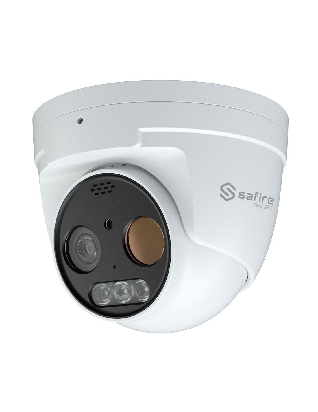 Cámara térmica Dual Turret IP Safire Smart - Sensor térmico 256x192 VOx | Lente 3.2 mm - Sensor óptico 1/2.7 5 Mpx | Lente 4 mm - Sensibilidad térmica = 50mK - AI basado en clasificación de humano y vehículo - Rango medición temp -20~150ºC / ± 8ºC