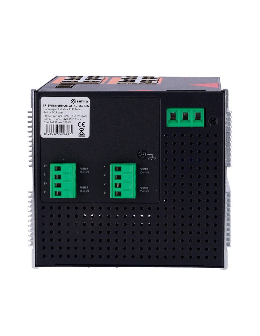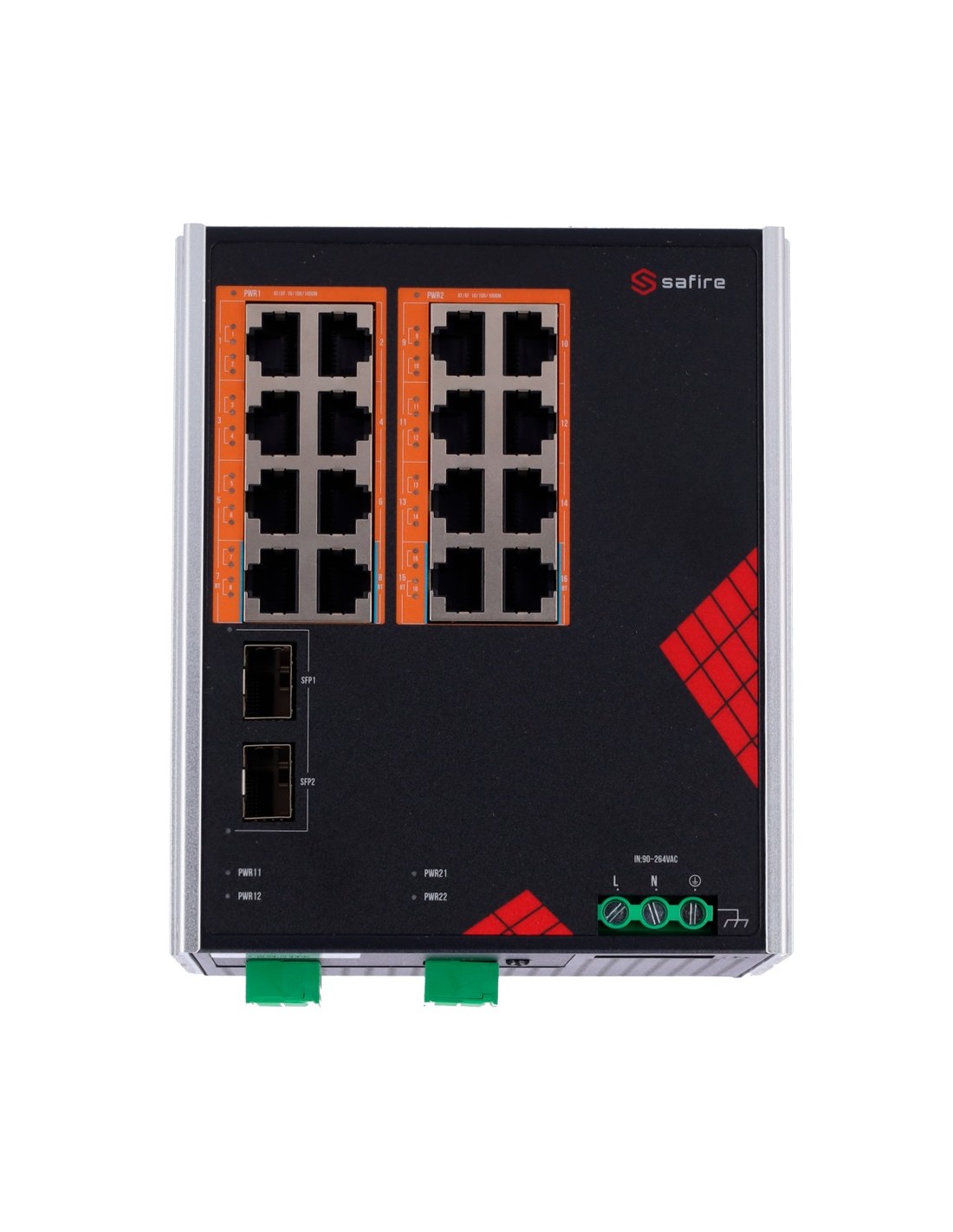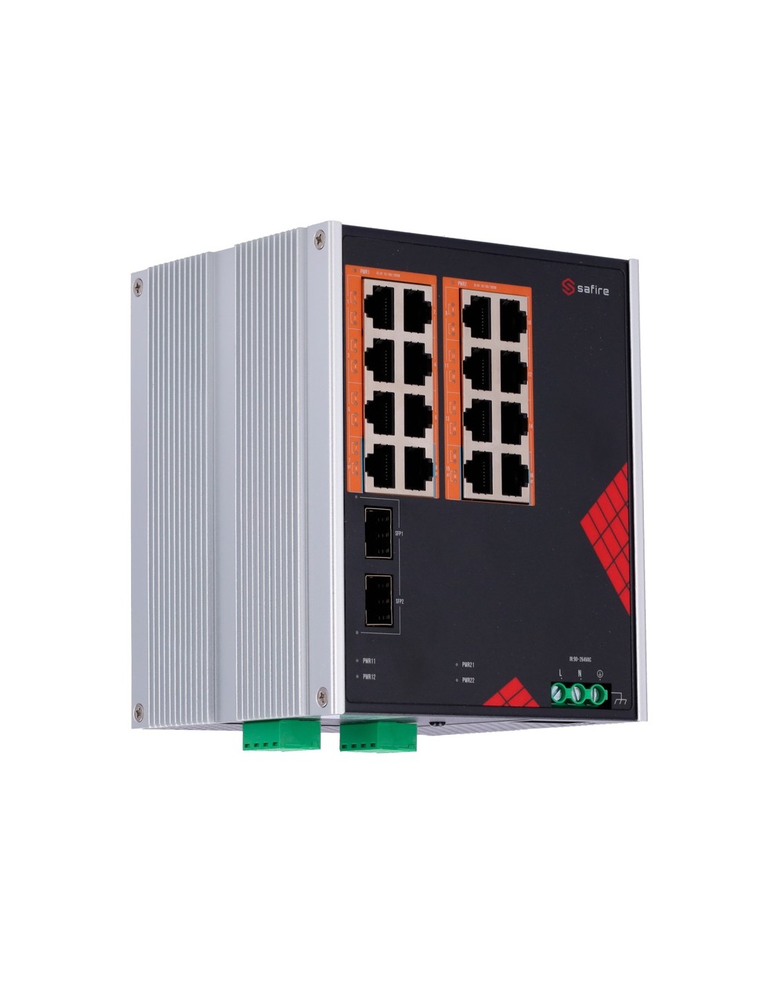 SAFIRE SWITCH INDUSTRIAL ALIMENTACIÓN AC Y DC - 16 PUERTOS GIGABIT + 2 SFP GIGABIT - 12 PUERTOS POE+ 30W + 4 PUERTOS HI-POE 60W