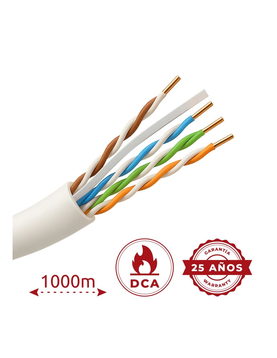Cable UTP rígido libre de halógenos - Categoría 6 - Cumple con 90m Fluke test - Conductor OFC, pureza 99.9% cobre - Rollo de 1000 metros - Diámetro 5.5 mm