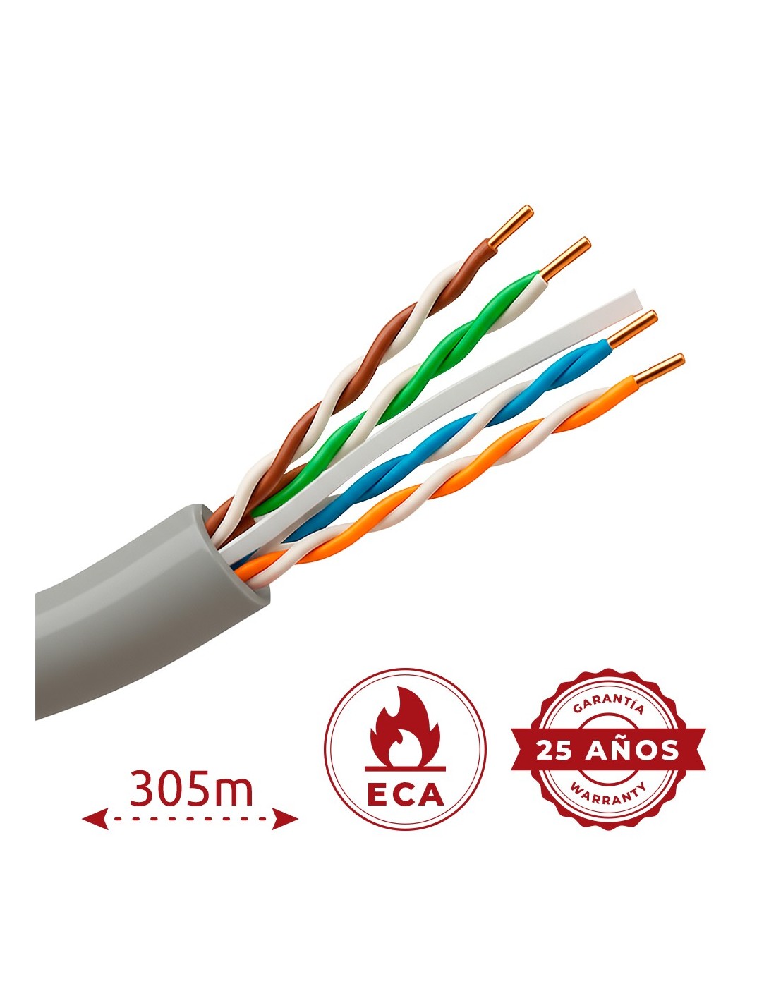 - Cubierta exterior PVC -Cumple con 90m Fluke test
