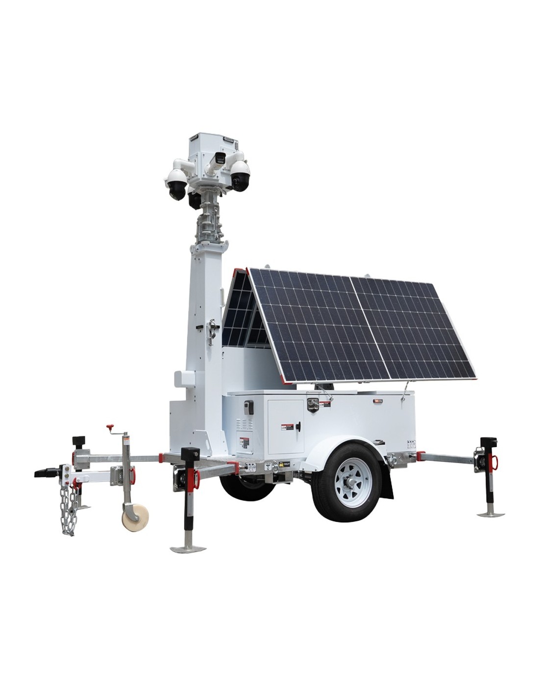 Trailer de alimentación autónoma para CCTV - Panel solar de 2x600W - Batería Litio LiFePo 12000Wh - Mástil telescópico hasta 9m - IP65 - Enganche de remolque y freno de mano manual - NO INCLUYE MONTAJE