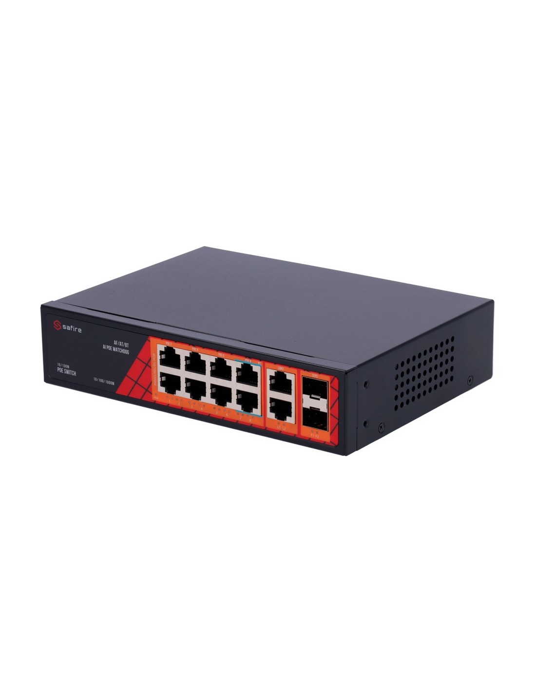 SAFIRE SWITCH HI-POE - 8 PUERTOS POE + 2 SFP + 2 RJ45 - VELOCIDAD DE PUERTOS GIGABIT 10/100/1000MBPS - 6 PUERTOS POE+ 30W + 2 PU