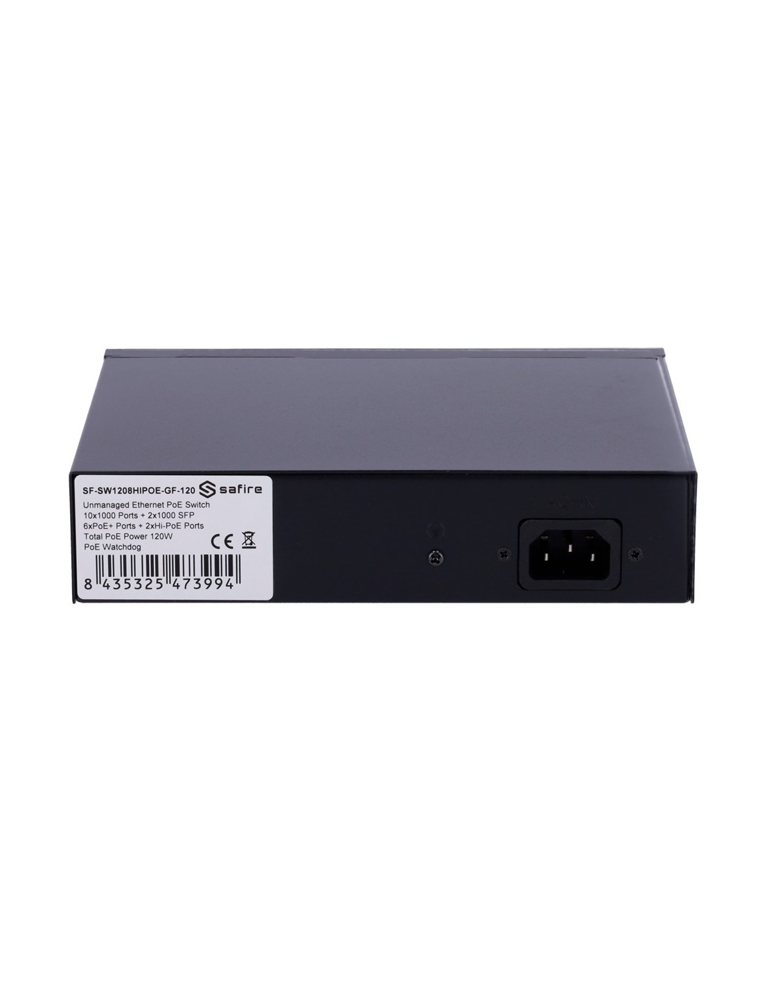 Safire Switch Hi-PoE - 8 puertos PoE + 2 SFP + 2 RJ45 - Velocidad de puertos Gigabit 10/100/1000Mbps - 6 Puertos PoE+ 30W + 2 Puertos Hi-PoE 60W - PoE Watchdog - Hasta 120W Potencia PoE total
