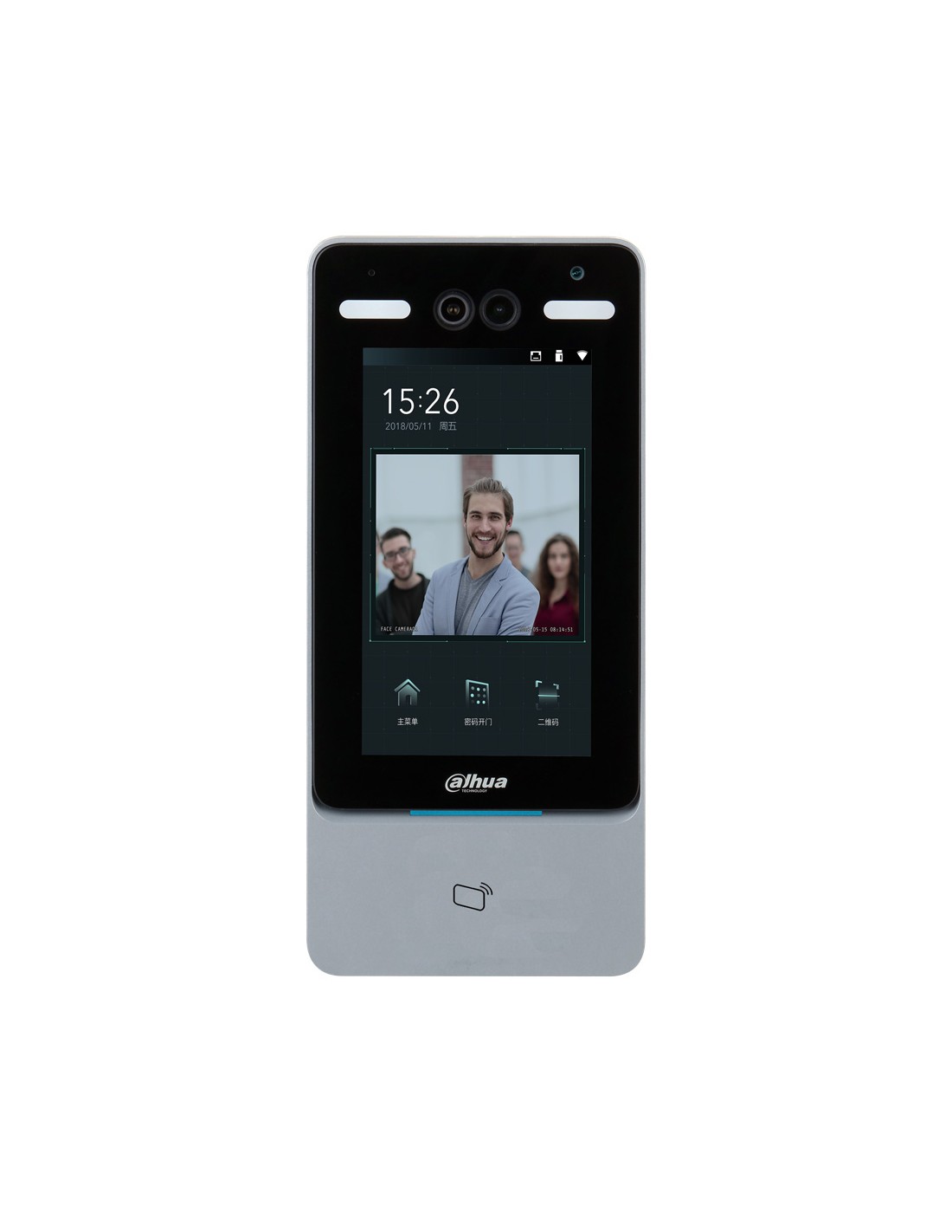 Terminal biométrico Dahua de control de accesos con identificación por reconocimiento facial, tarjeta ID, contraseña y combinaciones. Pantalla táctil IPS de 7" 600x1024. 50.000 usuarios. 50.000 contraseñas. 50.000 rostros. 50.000 tarjetas. 100.000 eventos. 1 cerradura, 1 sensor de puerta, 1 botón de salida. Tamper. RS485, RS232, entrada/salida Wiegand, puerto USB 2.0. Comunicación TCP. 12V CC.