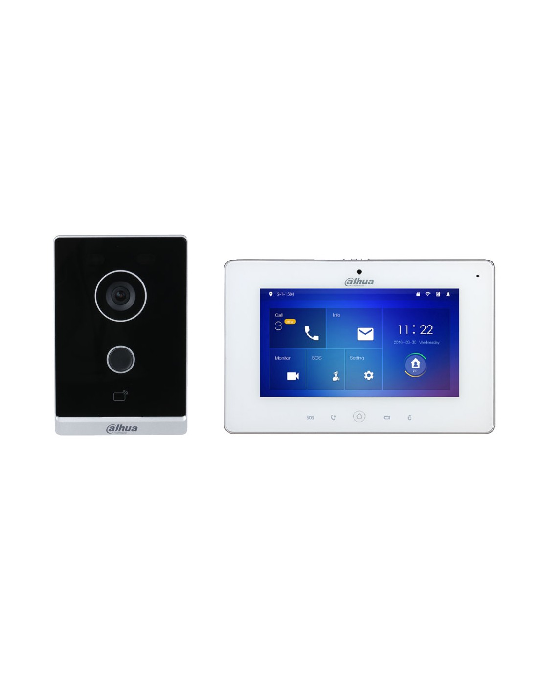 Kit de videoportero IP compuesto por: x1 Estacion de videoportero IP SIP DAHUA-2309 (VTO2211G-WP), x1 Monitor IP SIP VTH5221DW-S2.