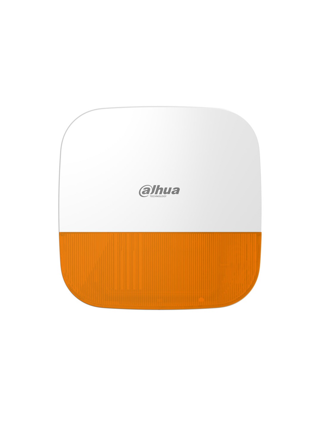 Sirena vía radio de exterior Dahua. Potencia sonora de 110 dB. Sonidos de Incendio, alarma médica, intrusión, pánico y más. Supervisión de temperatura. Salto de frecuencia y comunicación bidireccional. Actualización en la nube y recuperación automática en caso de fallo de actualización. Alimentada por batería o a 12V CC. Detección de batería baja. Protección IP65