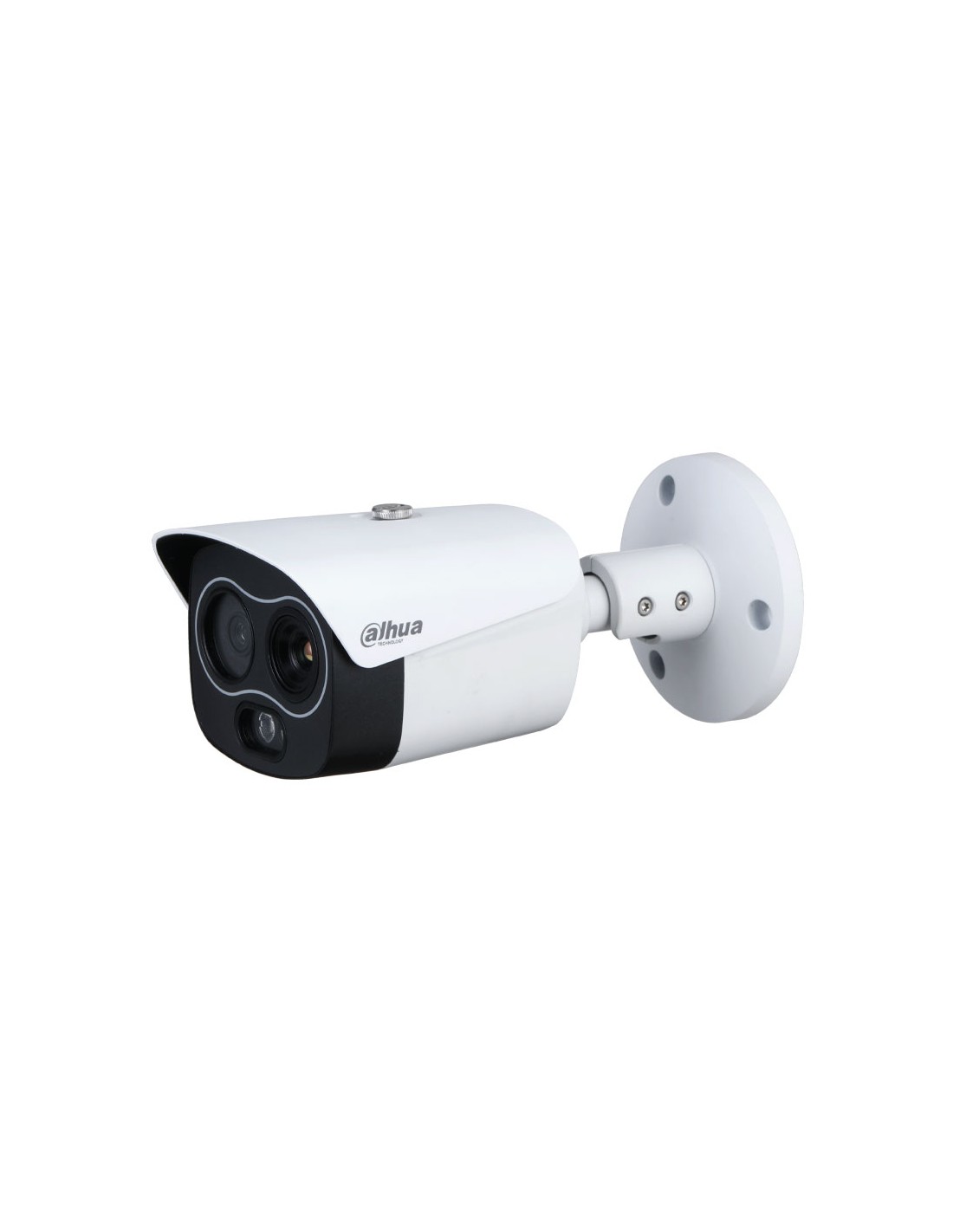 Cámara térmica + visible Dahua. Resolución térmica 256x192. Detecta personas hasta 292m. Detecta vehículos hasta 897m. Óptica térmica: 7mm (24°x18°). Óptica visible: 8mm (33,4°x25°). ICR, 0,05/0,005 lux, IR 30m. WDR digital, 2D/3D-NR, ROI. Inteligencia IVS. Medición de temperatura. 1 entrada / 1 salida de audio. 1 entrada / 1 salida de alarma. MicroSD, IP67, PoE