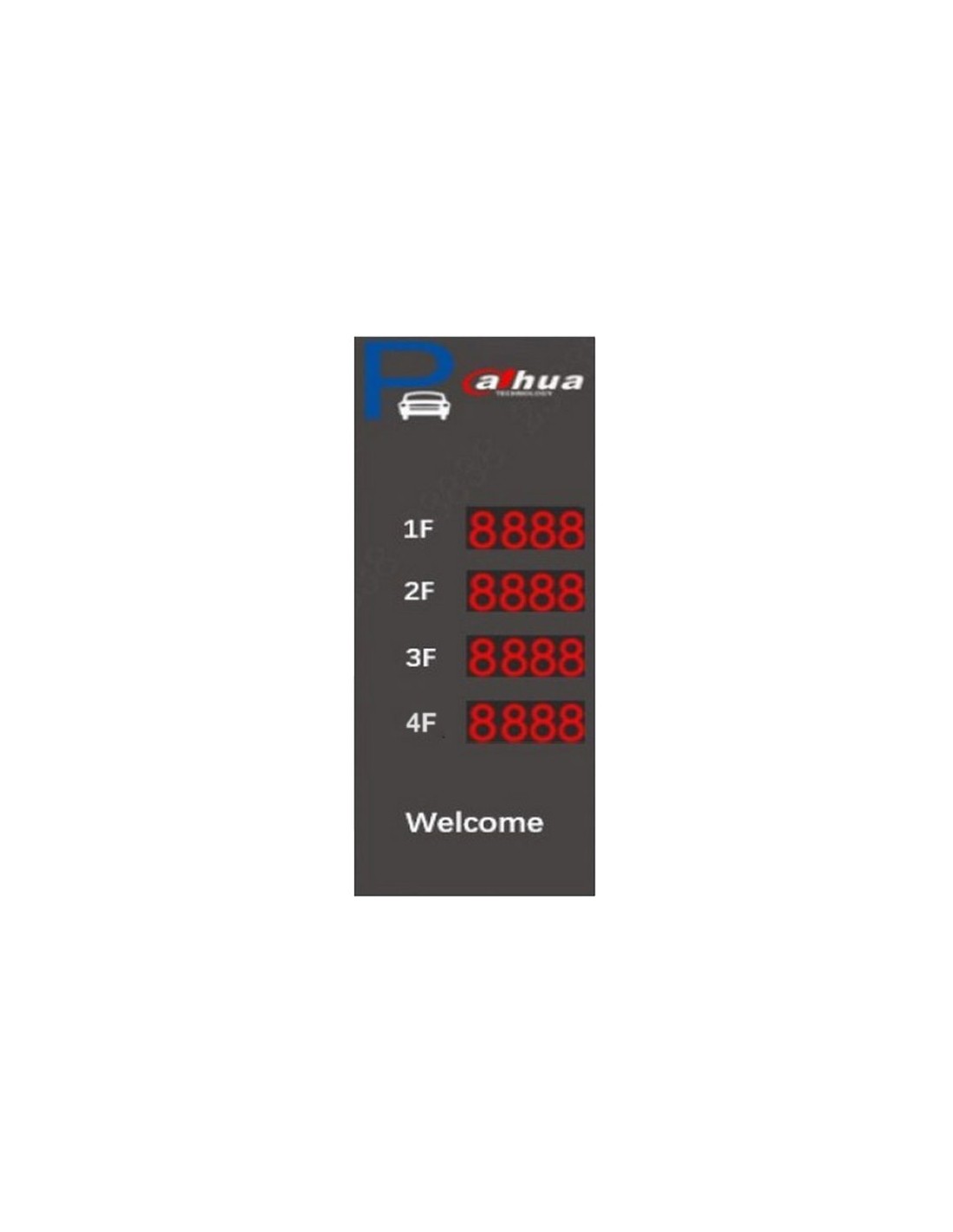Tótem LED Dahua de 4 capas. Placa LED de aparcamiento. Indicación del número de aparcamiento por planta. 4 capas de 4 dígitos. 2 puertos RJ45. Protección IP54. 240V CA