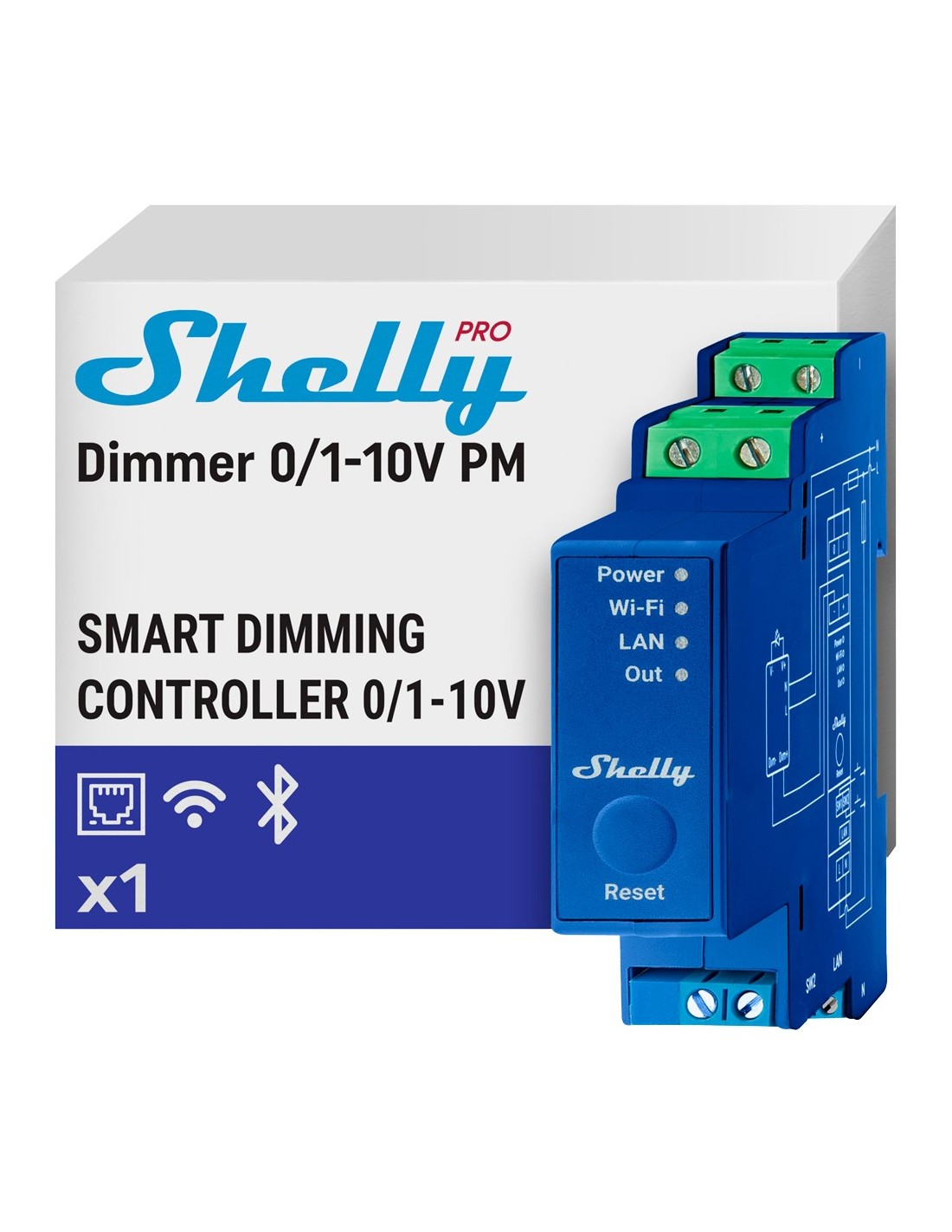 Shelly Pro Dimmer 0/1 - 10V PM - WiFi 2.4 GHz IEEE802.11 b/g/n / Bluetooth - Atenuador inteligente carril DIN - Soporta 110-240 V - Medidor de potencia - Compatible con Alexa y Google