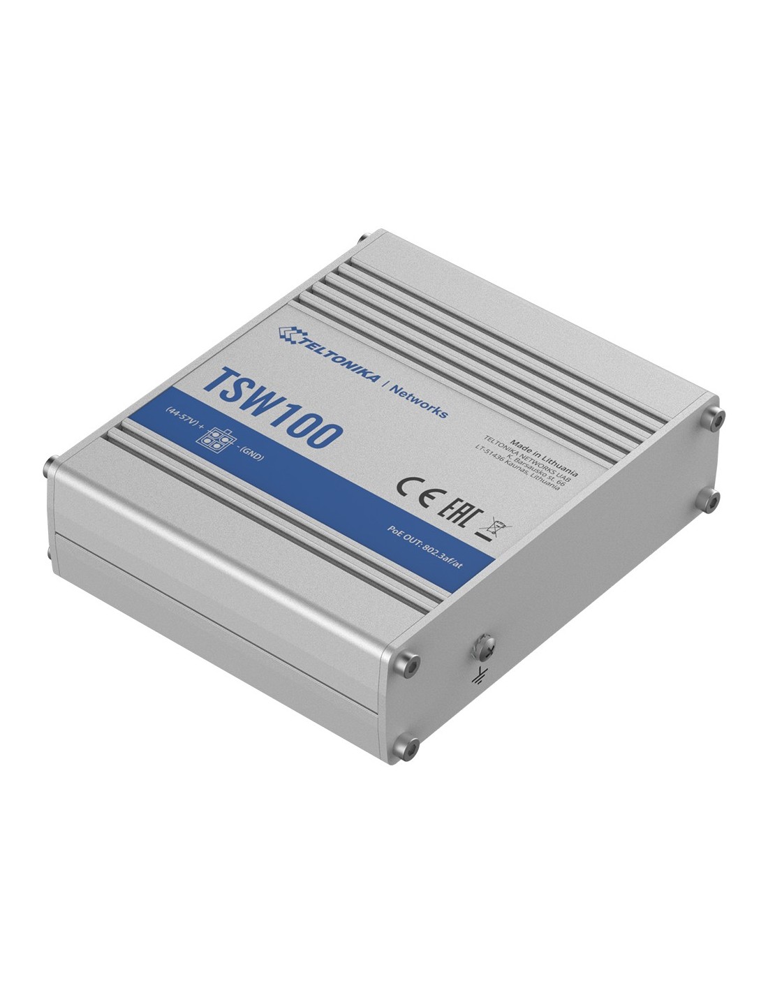 Teltonika Switch PoE No gestionable Industrial - 5 puertos Ethernet RJ45 Gigabit - 4 Puertos Ethernet PoE+ 802.3af/at - Hasta 30W por Puerto PoE - Hasta 120W de Potencia PoE - Rugerizado Carcasa Aluminio
