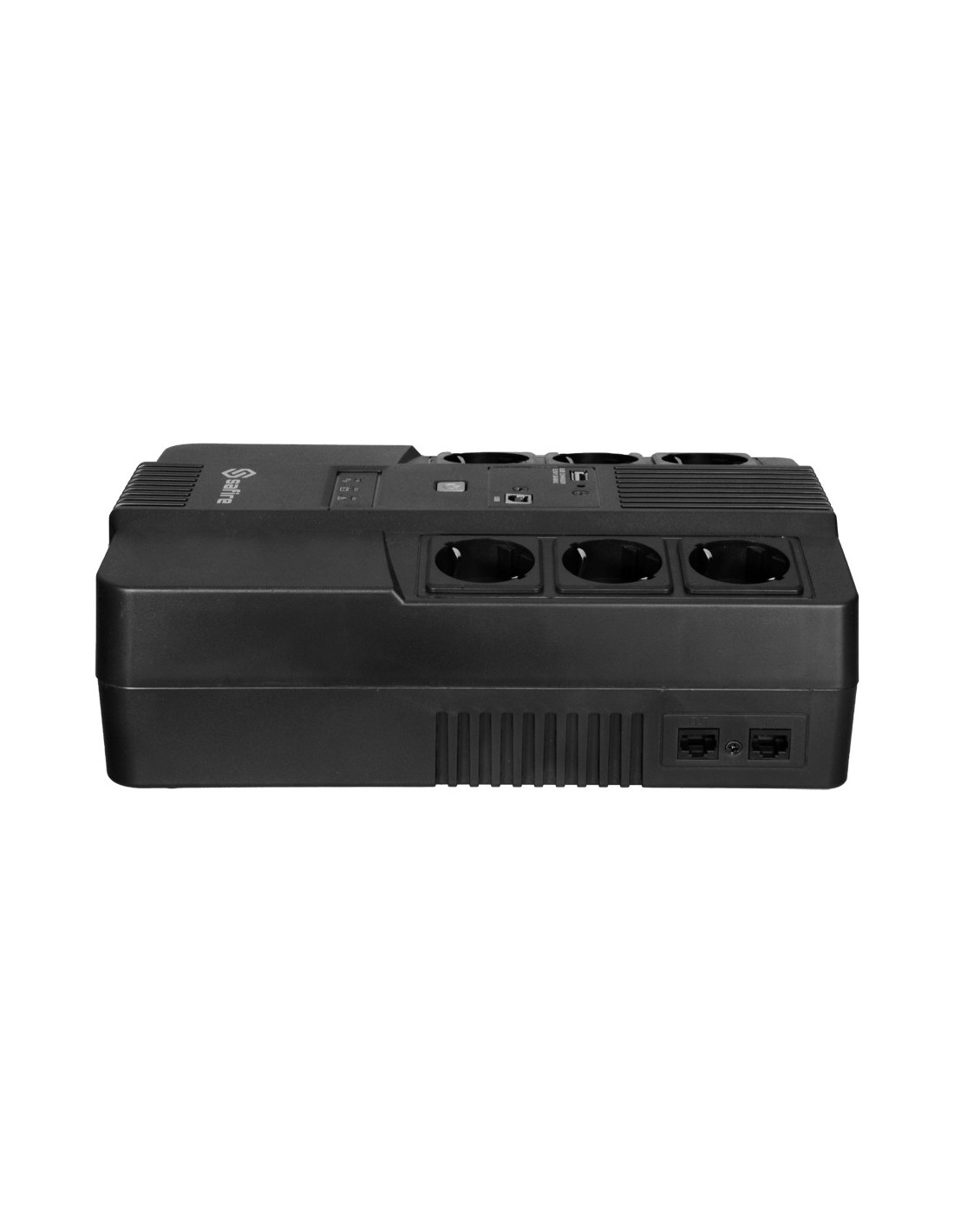 SAI monofásico line-interactive - Potencia 600VA/360W - Entrada 220~240 Vac /Salida 230 Vac - 6 salidas SAI/UPS protegidas - Tiempo de recarga 6~8 h - Batería de plomo-ácido sellada (incluida)