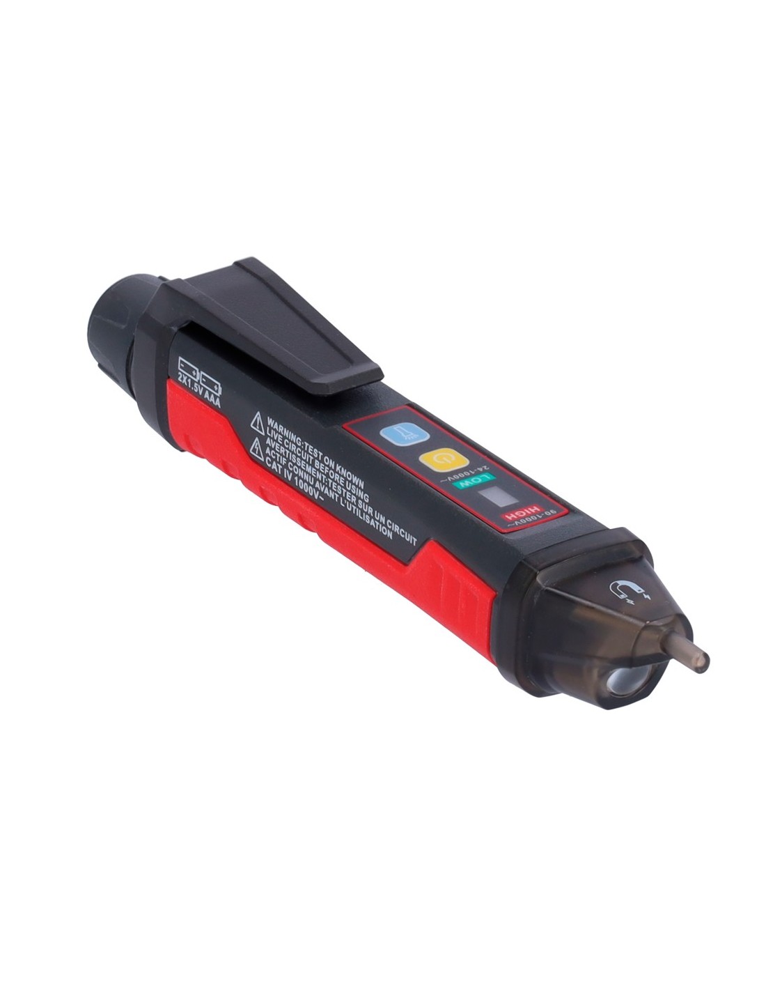 DETECTOR DE VOLTAJE AC SIN CONTACTO - MODO DE ALTO Y BAJO VOLTAJE HASTA 1000 V - AVISO AUDIBLE Y LED VISIBLE - APAGADO AUTOMÁTIC