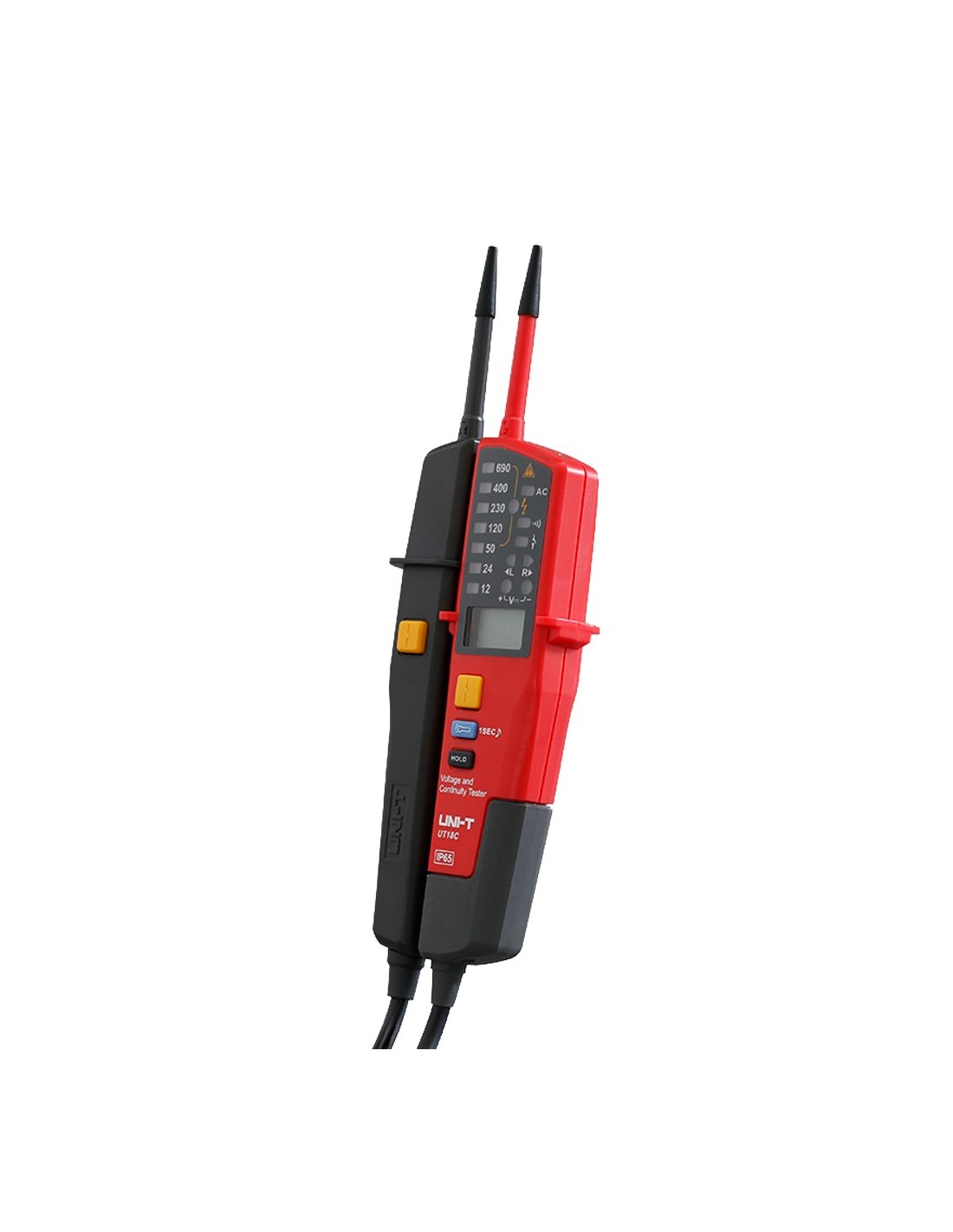 Detector de voltaje AC/DC - Display LCD - Modo de alto y bajo voltaje hasta 690 V - Aviso audible y LED visible - Apagado automático - Impermeable IP65