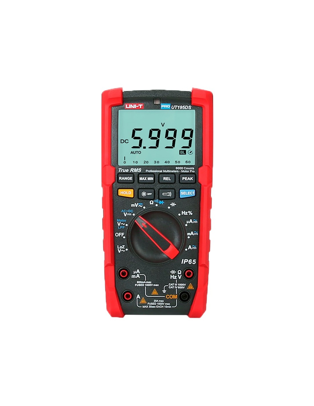 MULTÍMETRO DIGITAL INDUSTRIAL TRUE RMS - IP65 Y RESISTENTE A CAÍDAS DE 2 M - MEDICIÓN DC Y AC HASTA 1000V / 20A - LINTERNA INTEG