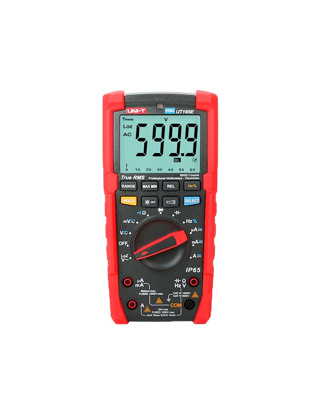 MULTÍMETRO DIGITAL INDUSTRIAL TRUE RMS - IP65 Y RESISTENTE A CAÍDAS DE 2 M - MEDICIÓN DC Y AC HASTA 1000V / 20A - LINTERNA INTEG
