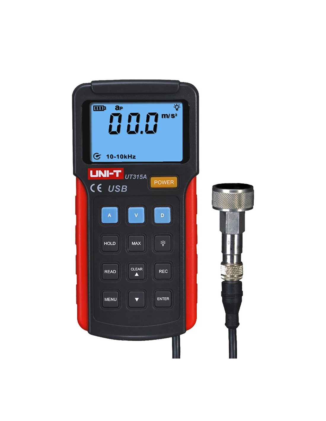 Medidor de vibraciones - Mide Aceleraciones, Velocidades y Desplazamiento - Utilización en maquinaria rotativa y alternativa - Display de 2000
