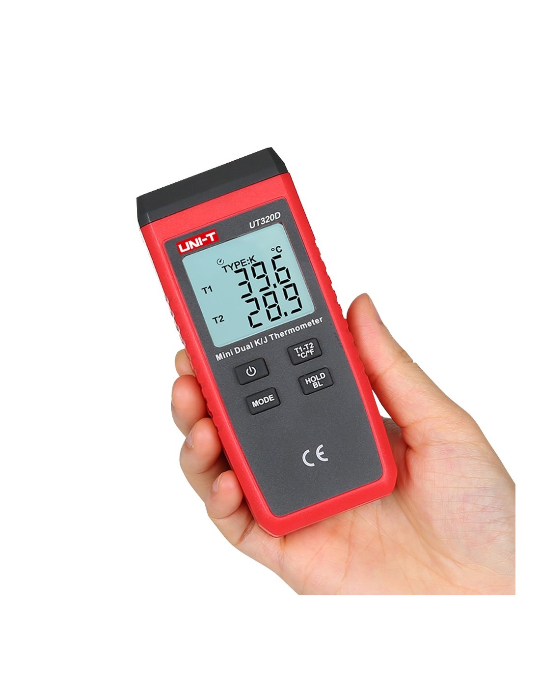 TERMÓMETRO CON SONDAS TIPO K Y J - DISPLAY DUAL RETROILUMINADO - ALTA PRECISIÓN - RESISTENTE A CAÍDAS DE 1M DE ALTURA - APAGADO
