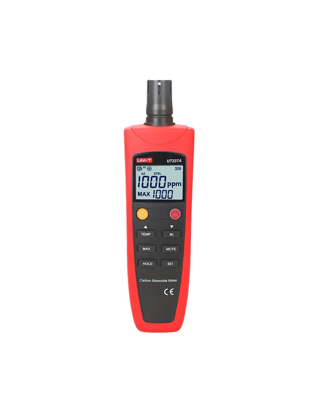 Medidor de monóxido de carbono (CO) - Incorpora sensor electroquímico de gas - Alarma configurable con señal audible - Visualización de valor máximo registrado - Auto testeo del sensor