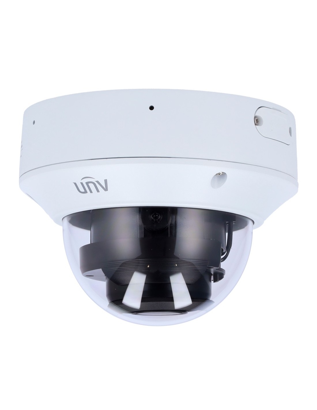 Cámara Domo IP Uniview - Gama Pro - 8 MP | Lente 2.8 ~ 12 mm | microSD 512 GB - IR 40 m | WDR 140 dB | 60 FPS - Wise-ISP | Conteo de personas | Metadatos - PoE | UMD | SIP | IP67 | IK10 | 60fps - 2 Mic | Altavoz | Alarmas | Audio