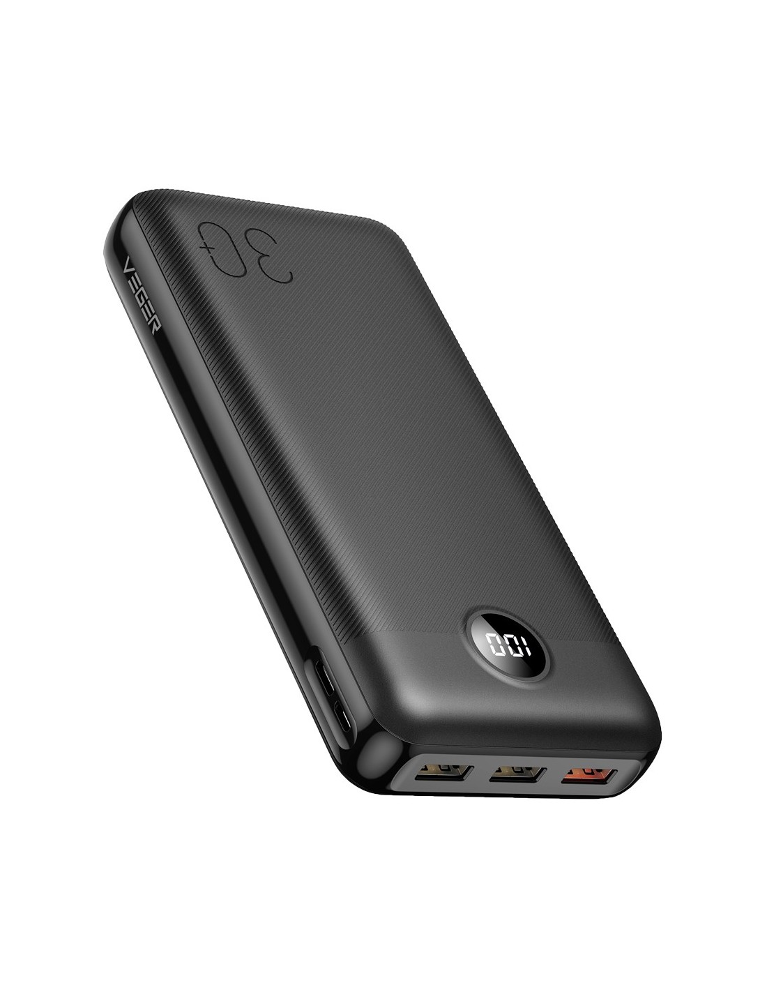 VEGER POWER BANK CON PANTALLA LCD - CAPACIDAD 30000MAH - ENTRADAS USB-C, MICRO USB - SALIDAS USB-C, 3X USB-A - CARGA 3 DISPOSIT