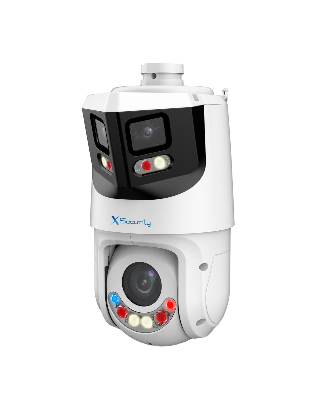 X-Security IP tándem gama ULTRA - Doble Lente (Panorámica 8Mpx + PTZ 4Mpx) - Lente PTZ 5~125 mm | 25X | PoE+ - Lente panorámica 2.8 mm | Dual Light 100 m - AutoTracking | Alarmas | Audio | MicroSD | IP66 - IVS | SMD 4.0 | Smartlight | Alarma disuasoria
