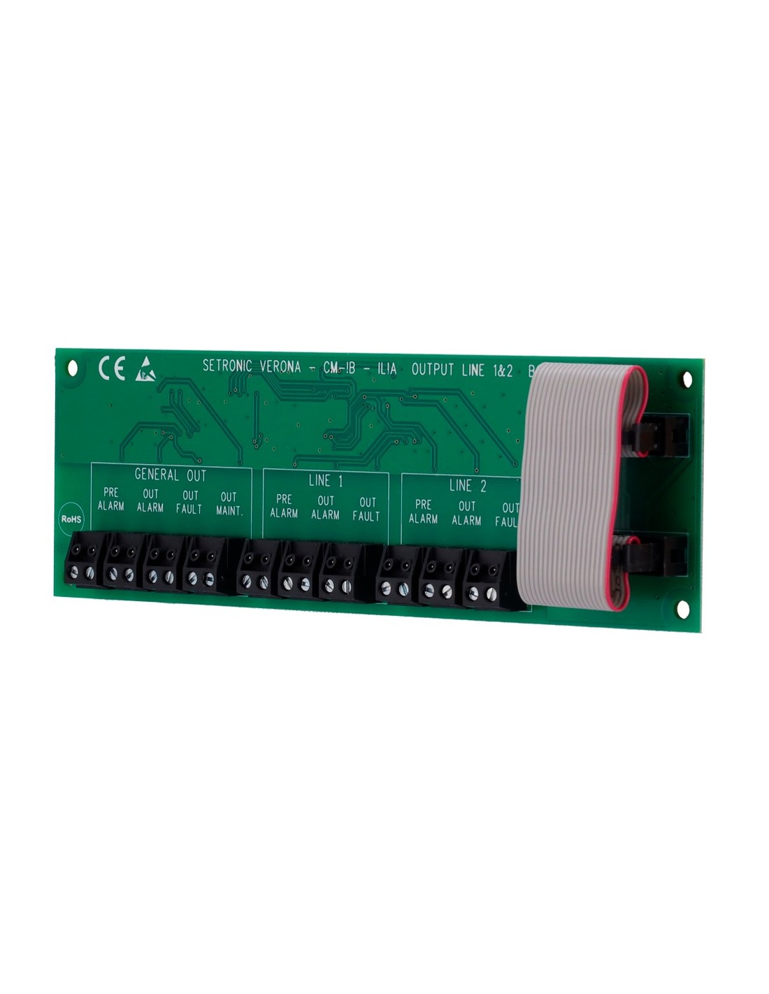La tarjeta de relé CM-IB para controladoras CLI, permite la gestión eficiente de señales de prealarma, alarma y fallo general, así como el mantenimiento en sistemas de detección lineal óptica, garantizando una integración fiable en instalaciones que requieren máxima seguridad y control centralizado.
