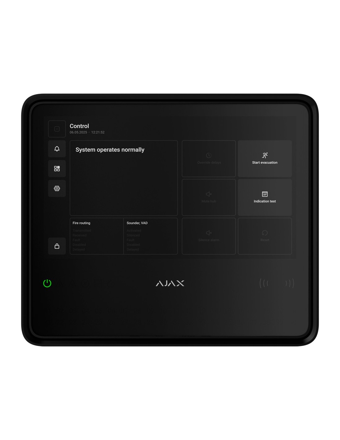 The Ajax AJ-EN54-FIREHUB-B control panel stands out as an advanced wireless fire detection and alarm solution, allowing the management of up to 200 wireless devices, 40 fire zones, 80 rooms and up to 200 users. Thanks to the integrated three-way communication: Ethernet, Wi-Fi and dual SIM (2G/3G/4G LTE), ensuring high availability and redundancy of communications; with Ajax proprietary transmission technologies such as Jeweller, Wings and TurboWings.