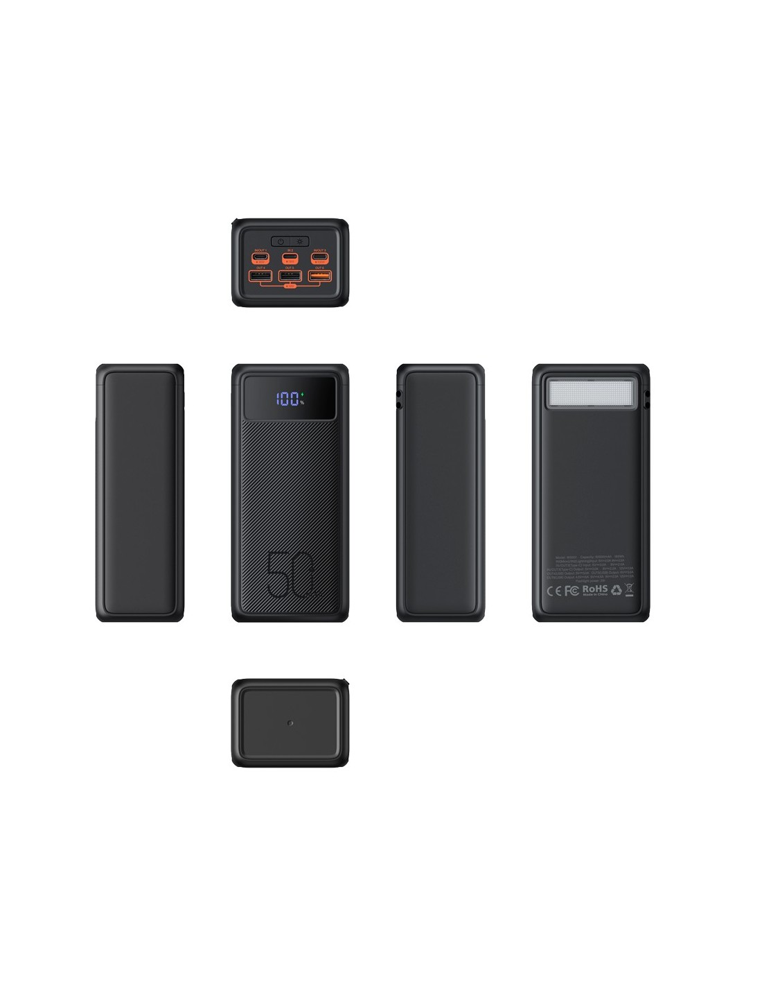 VEGER Power bank with LCD display - Capacity 50000mAh - USB-C, Micro USB, Lightning inputs - USB-C, 3x USB-A outputs - Loads 4 devices at a time - Fast charge 22.5W | Flashlight and compass