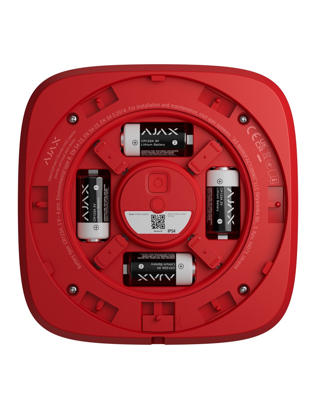 A AJ-EN54-SOUNDER-B é uma sirene de alarme de incêndio sem fios, certificada de acordo com a norma europeia EN 54-3 e EN 54-25. Permite avisos sonoros potentes (até 100 dB), com a possibilidade de escolher entre 32 tons, e uma comunicação segura com o painel de controlo através da tecnologia Jeweller.