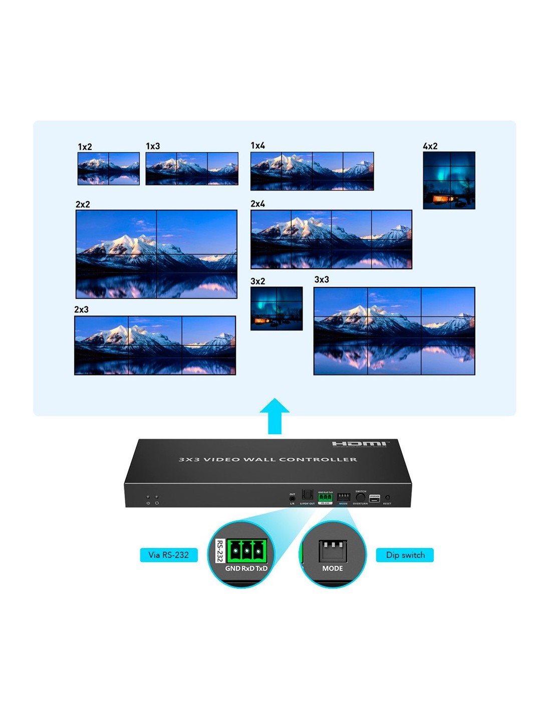 Electronica Videowall HDMI - Videowall 3x3 - Permite 1:9 - Resolução 4K