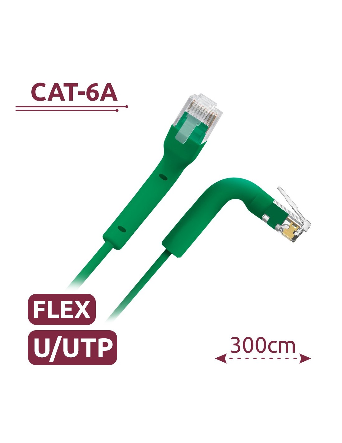 CABO UTP FLEXÍVEL - ETHERNET - CONECTORES RJ45 - CATEGORIA 6A - 3 M - COR VERDE